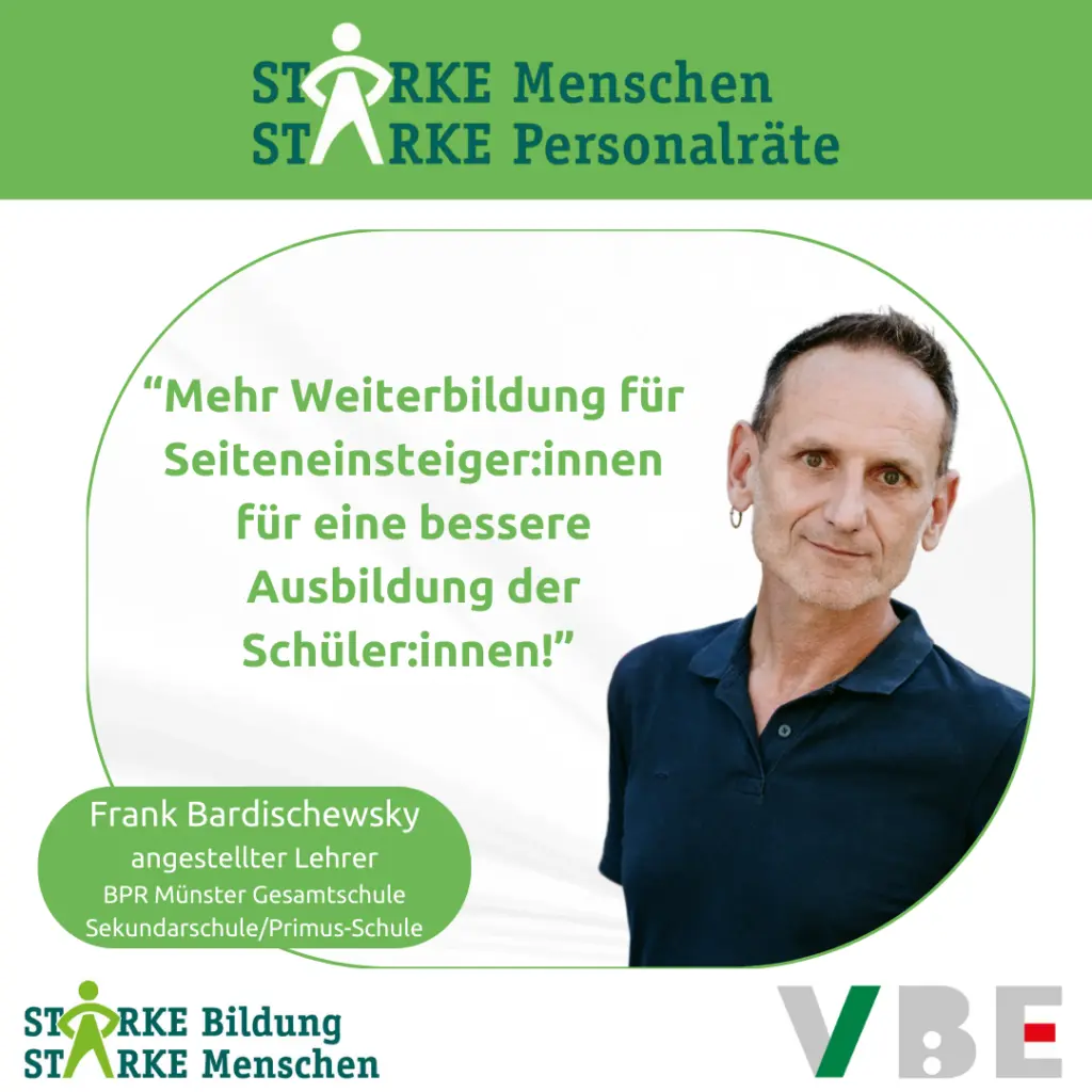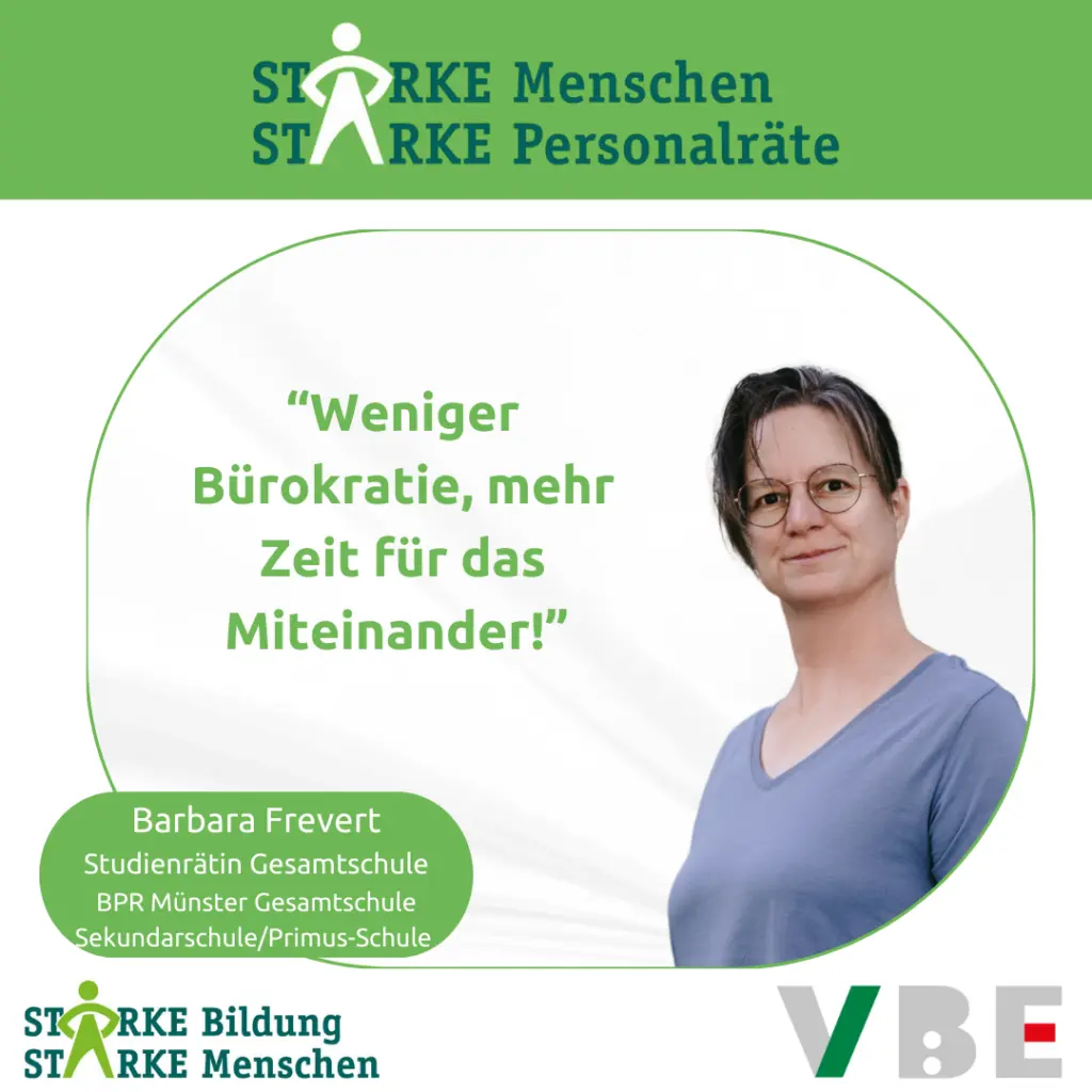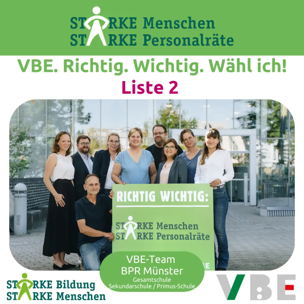 Wir sind euer VBE Team für den Bezirkspersonalrat Münster Gesamtschulen, Sekundarschulen und PRIMUS. Wir machen uns für euch stark und vertreten euch in personalrechtlichen Fragen!