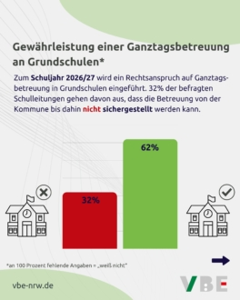 Jede dritte Schulleitung in Nordrhein-Westfalen (32 Prozent) geht davon aus, dass die Betreuung von der Kommune bis zum